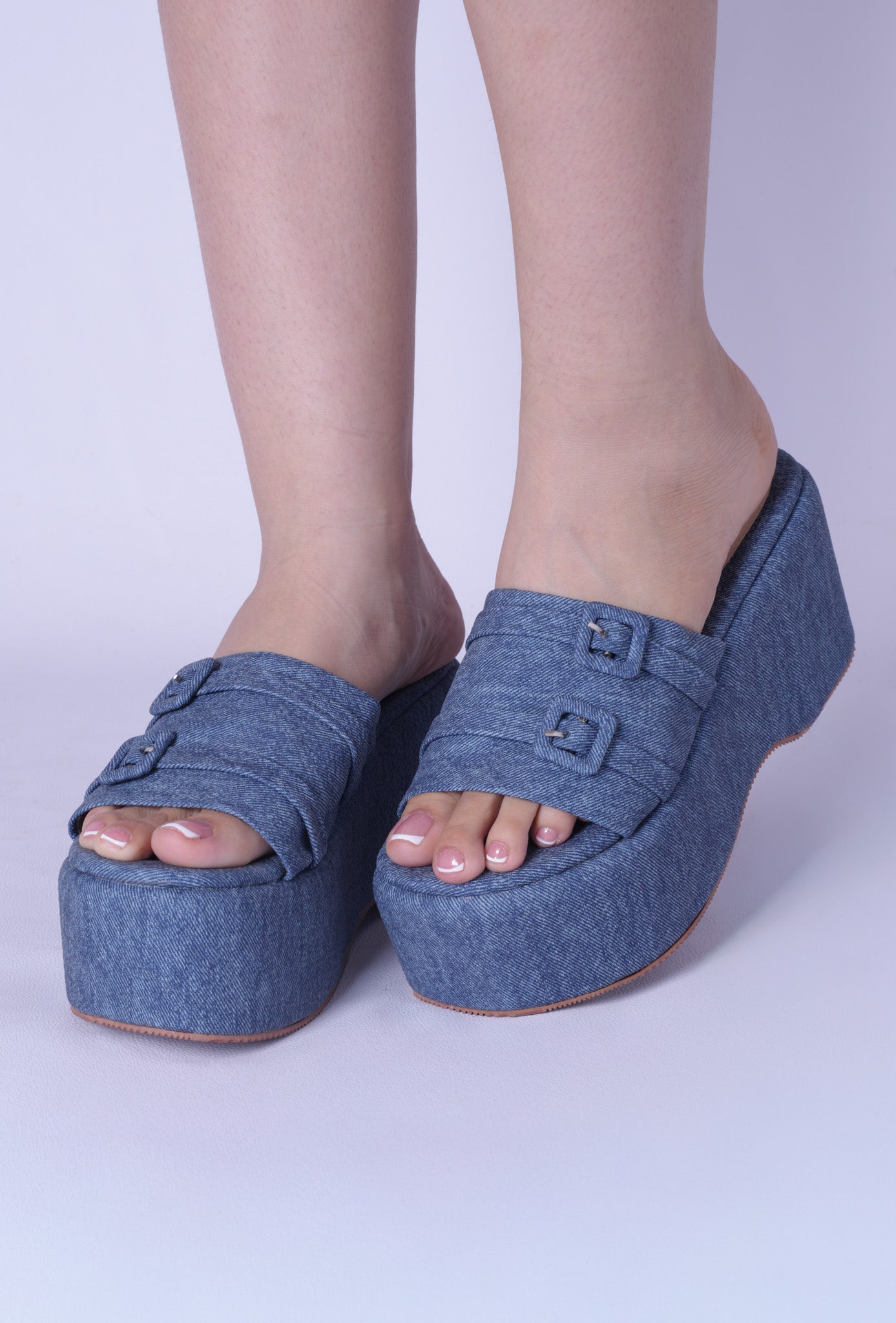Diseño recto en denim con estilo relajado y moderno. Estas plataformas son el equilibrio ideal entre comodidad y tendencia, perfectas para darle un toque casual y auténtico a tu look.
